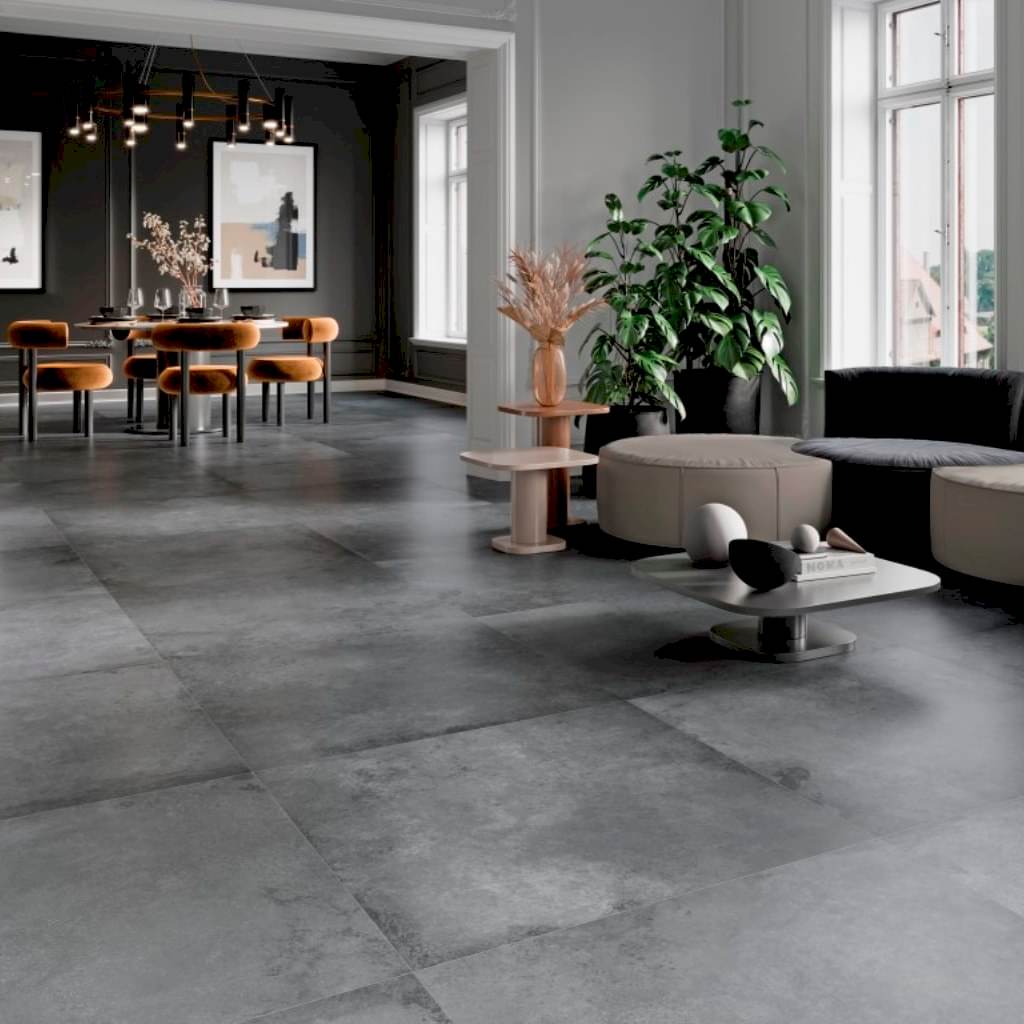 The Alloy large grey tiles will add a stylish modern vibe to any home or commercial environment. These beautiful hardwearing porcelain tiles feature some shade and pattern variation between tiles to give an attractive slate effect finish. With precision cut straight edges, the Alloy range of rectified tiles come in a popular 60 x 60 size, and are perfect for contemporary open plan areas where a seamless design is desired. They have a sophisticated matt finish and feature a useful R10 anti slip surface, which is ideal for hallways and bathrooms. For free tile samples and tiling advice such as grout colour suggestions, please contact the Direct Tile Warehouse team.