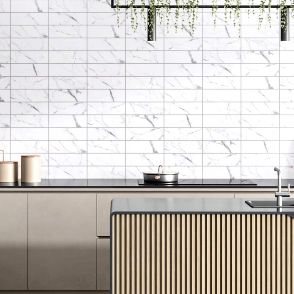 Introducing our Apollo Marble Metro Tiles, a sleek choice for those desiring a blend of timelessness and modernity. Crafted meticulously, these ceramic tiles mimic classic marble with a white base and subtle grey veins, adding sophistication to any setting.