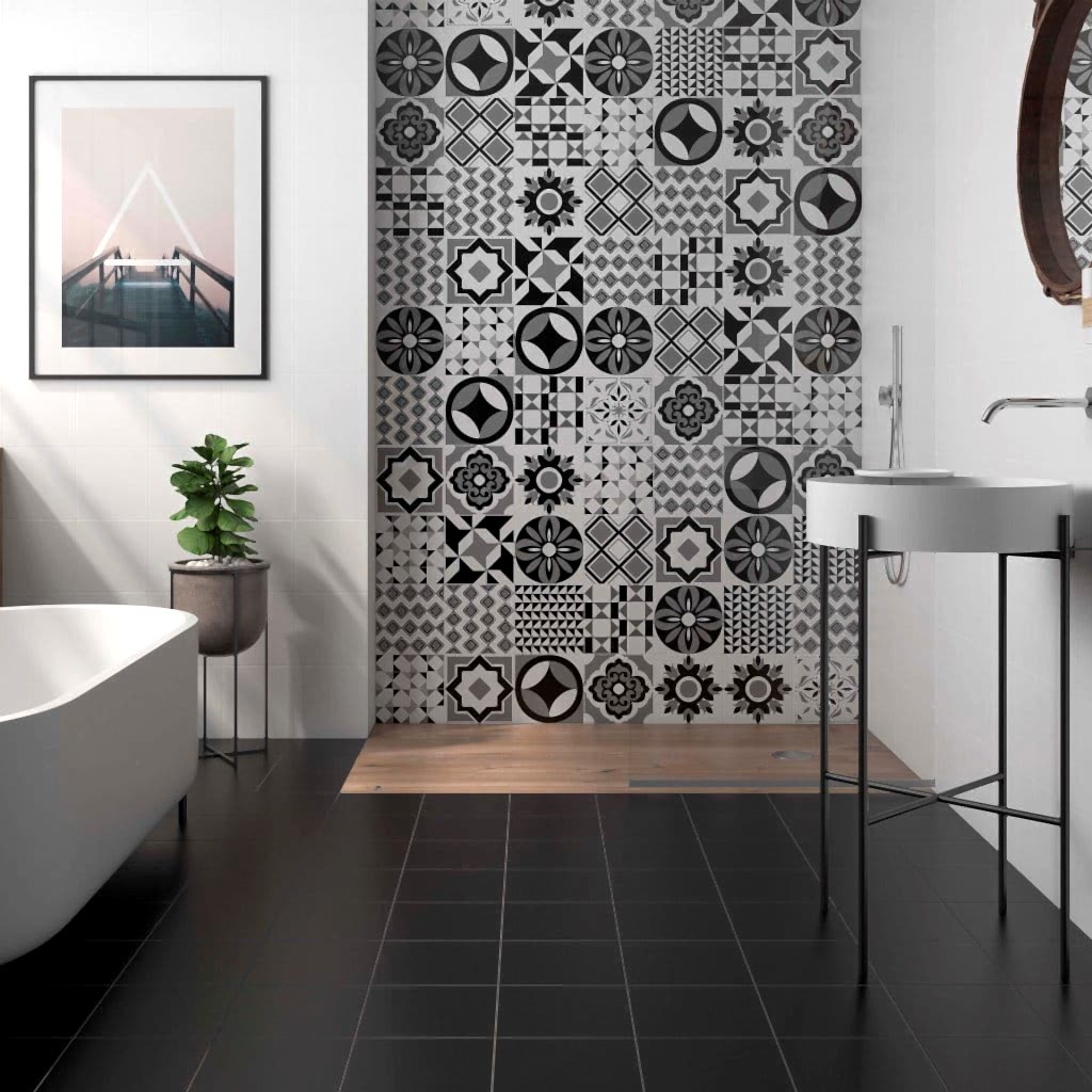 Use on their own to create a dramatic black wall or floor, co-ordinate with the white tiles for an art deco style chequered floor or team with one of the patterned tiles from the Art range to frame your new statement wall or floor.