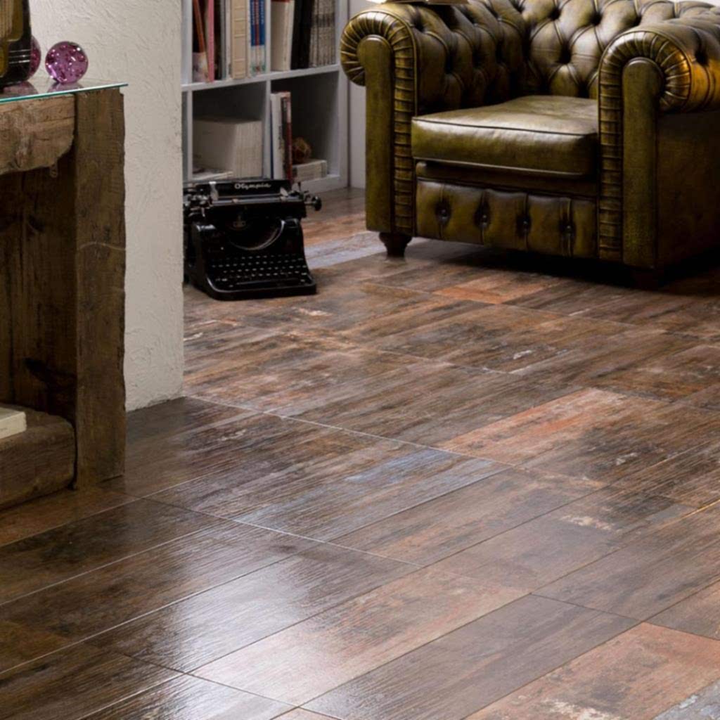 The eye catching Castle rustic wood effect floor tiles, are perfect for creating a statement floor design throughout the home. The attractive mix of tones creates a gorgeous shabby chic feel which can be used in modern or more traditional designs. They have a stylish matt finish and are made from quality ceramic, giving you all the beauty of wood but in a durable maintenance free material.