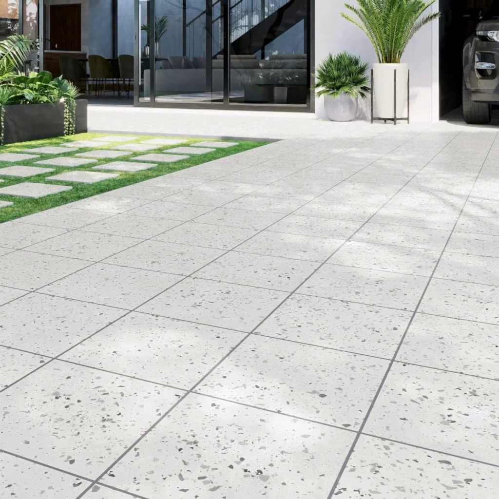 Transform your outdoor spaces with the Italian inspired Carnival terrazzo porcelain tiles, featuring a blend of subtle grey tones and on-trend terrazzo style flakes. Made from hardwearing quality porcelain and with a sophisticated matt finish, these beautiful tiles which are slightly deeper then most tiles at 14mm are perfect for gardens and patios.