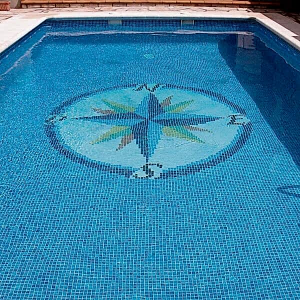 Nautical Compass Pool Mosaic Design will add a stylish feature to your swimming pool. Co-ordinate with the anti slip mosaic tiles and if desired an attractive border. If you’re feeling continental please keep the ‘O’ form Oeste but if you would like the ‘O’ to be replaced with a ‘W’ for west this is possible but please request when ordering.
