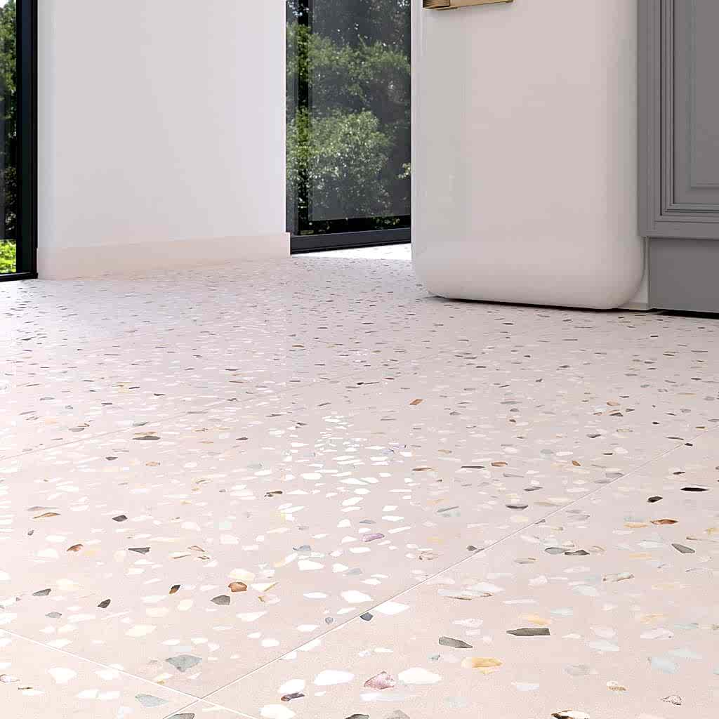 Elegant Italian inspired designs are easy to achieve with these gorgeous Doria beige terrazzo porcelain tiles, which have been designed to use on both walls and floors. Made from hardwearing quality porcelain and with a sophisticated matt finish, these eye catching tiles look great on their own or teamed with other tiles such as the beige hexagon terrazzo tile. With precision cut straight edges which facilitates narrow grout lines and in a modern 60 x 60 format, they are perfect for stylish open plan rooms where a seamless design is desired. They also feature a useful R10 anti slip surface, which is ideal for hallways, kitchens and bathrooms. For free tile samples and tiling advice please contact the Direct Tile Warehouse team.