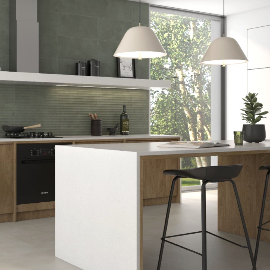 Looking for refined sage kitchen tiles to introduce a sense of serenity to your kitchen or bathroom decor? Consider exploring the Eleganza sage green tiles. These 30cm x 60cm wall tiles, featuring a gentle and smooth sage green hue, brings an element of sophistication to any bathroom or kitchen.