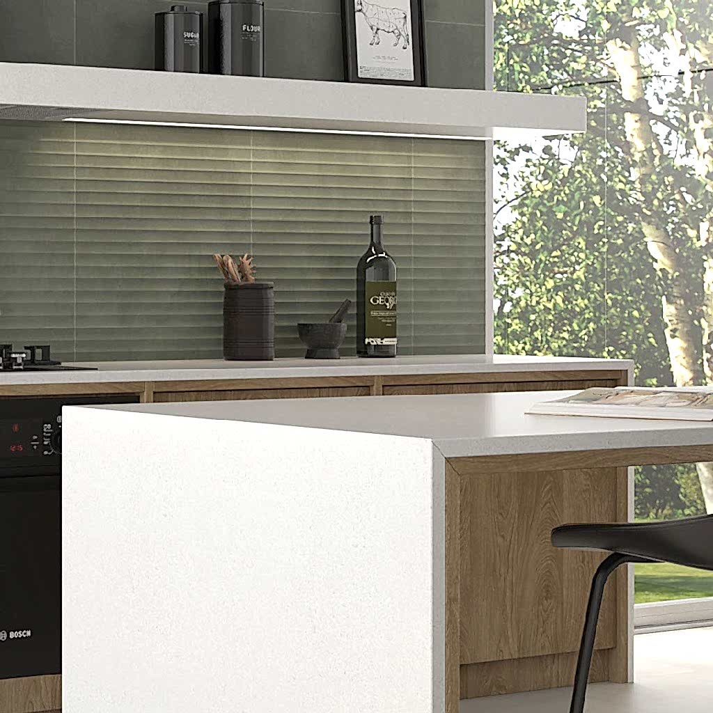 With a contemporary design, these tiles feature a subtle matt finish and rectified edges, ensuring a seamless and polished appearance to effortlessly enhance the elegance of your interiors. For another visual layer, consider pairing with our Eleganza Sage Kitchen Tiles.
