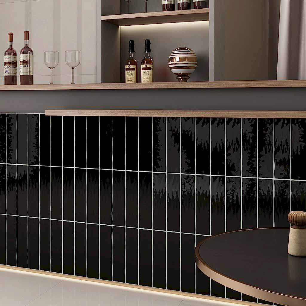 If you’re a fan of black, these gorgeous linear tiles are a stunning option for sleek, modern designs. The rectangular shape and smooth, glossy surface offer a contemporary twist to traditional metro tiles.