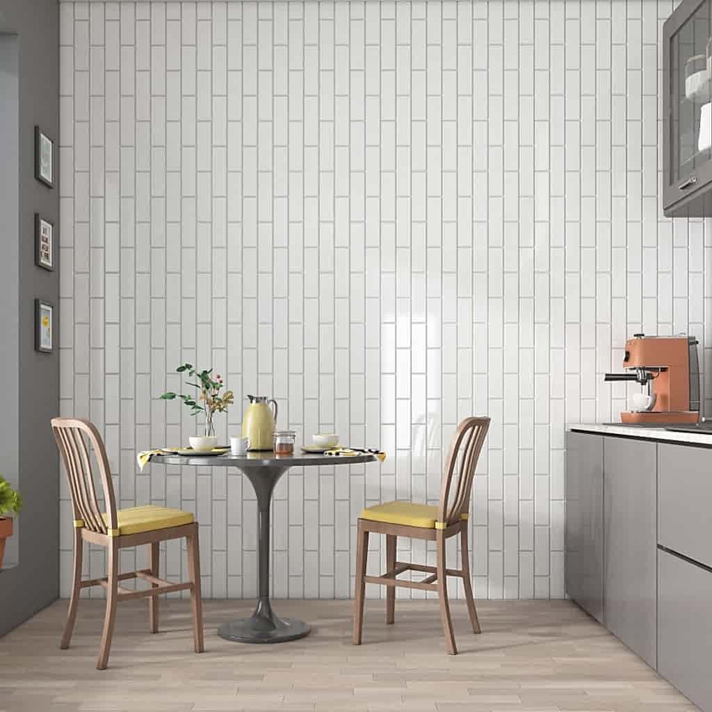 Beautifully stylish with a timeless elegance, the Linear white brick effect tiles are perfect for anyone looking to upgrade their bathroom or kitchen with a contemporary, sleek design. The flat rectangular shape and gorgeous glossy surface offer a modern twist to traditional metro tiles.
