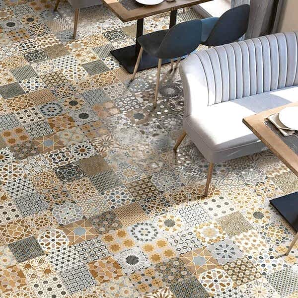 We love the intricate detail, vintage design and warm North Africa influenced colours of these Marrakech Tiles in the Mix Tile Design. Theyโre the type of tile to bring back memories of sunny days abroad. Made from quality porcelain they are perfect for brightening up any room in the home and for some commercial environments. These tiles can be used on their own or framed with plain or wood effect tiles to create a statement area. For free tile samples and tiling advice please contact the Direct Tile Warehouse team.