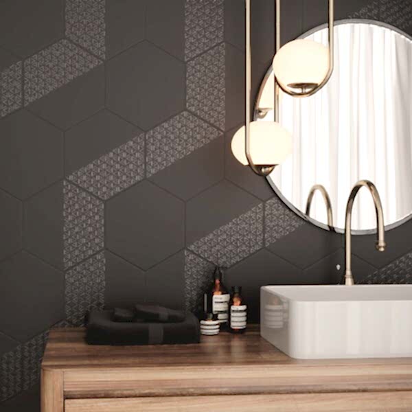 These decor black hexagon wall tiles have been designed to make an impact. Use on their own or team with the plain black Opal hexagon tiles to create gorgeous hexagon tile patterns. Simply injest as much pattern as you desire. Made from quality porcelain, they offer a sophisticated matt finish and a fascinating split design. For free tile samples and tiling advice please contact the Direct Tile Warehouse team.