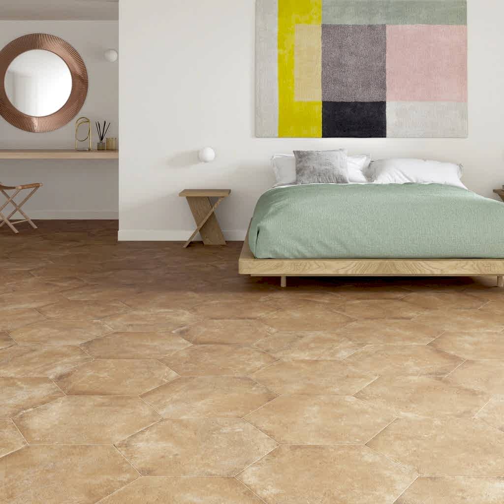 In a large modern hexagon format, they also offer a contemporary shape perfect for the on-trend terracotta revival.