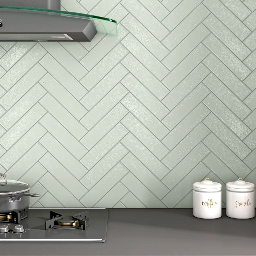 Crafted from high-quality ceramic, the soft sage green hue exudes tranquillity, making them ideal for creating a calming atmosphere in any room. Whether used for a splashback, feature wall, or entire wall coverage, these tiles are sure to make a statement. Why not opt for a striking herringbone layout? Pair them effortlessly with white, grey, or wood-effect elements to achieve a harmonious and sophisticated look.