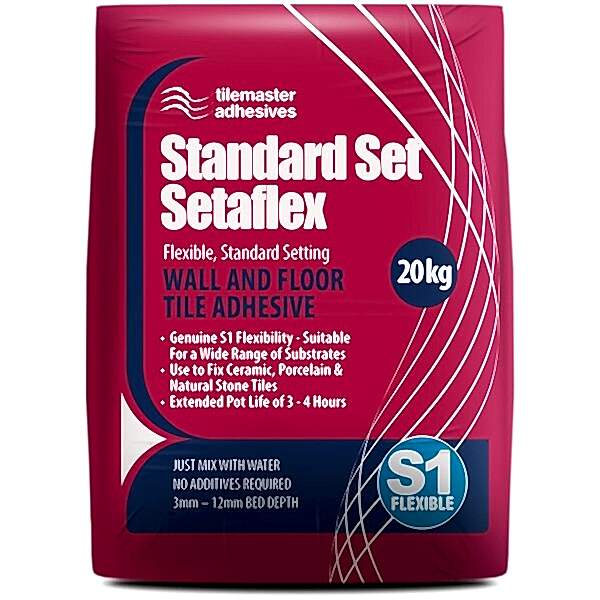 Standard Setaflex is a flexible, cement based wall and floor tile adhesive. It has been developed for fixing a large variety of tiles to surfaces subject to limited movement. It has an extended open time, and is ideal where longer working times are needed. It is suitable for areas subject to prolonged wet conditions such as wet rooms and can be used internally and externally.