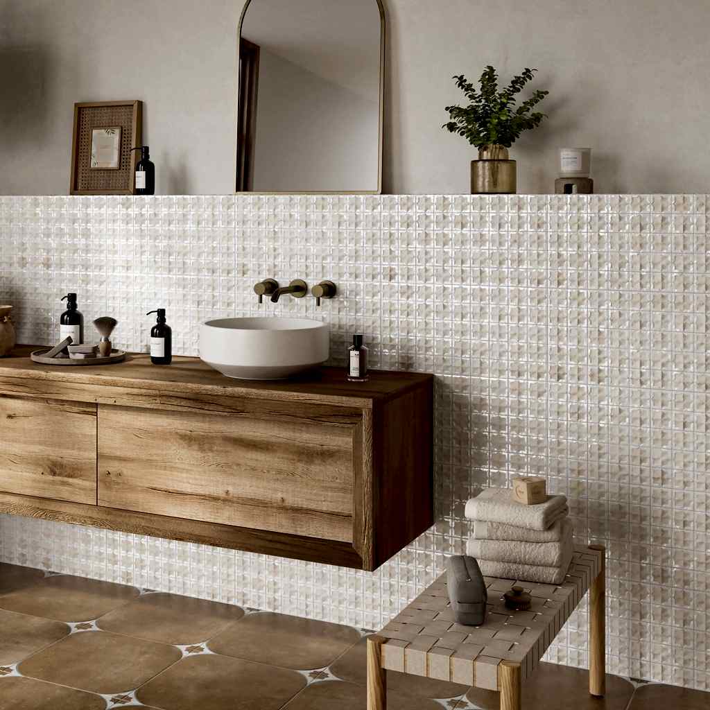 A stunning fusion of traditional Moroccan charm and modern elegance, our Tetuan Arena White Tiles bring timeless beauty to any space. Featuring a glossy white background with a delicate star-shaped matt cut-out, these porcelain wall tiles create a striking yet subtle design, perfect for adding texture and depth.