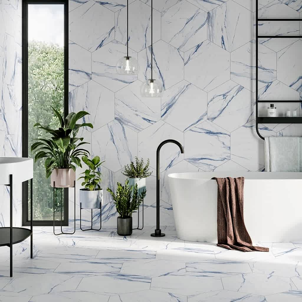 Our Thassos Marble Blue Hexagon Tiles capture refined beauty and practicality.