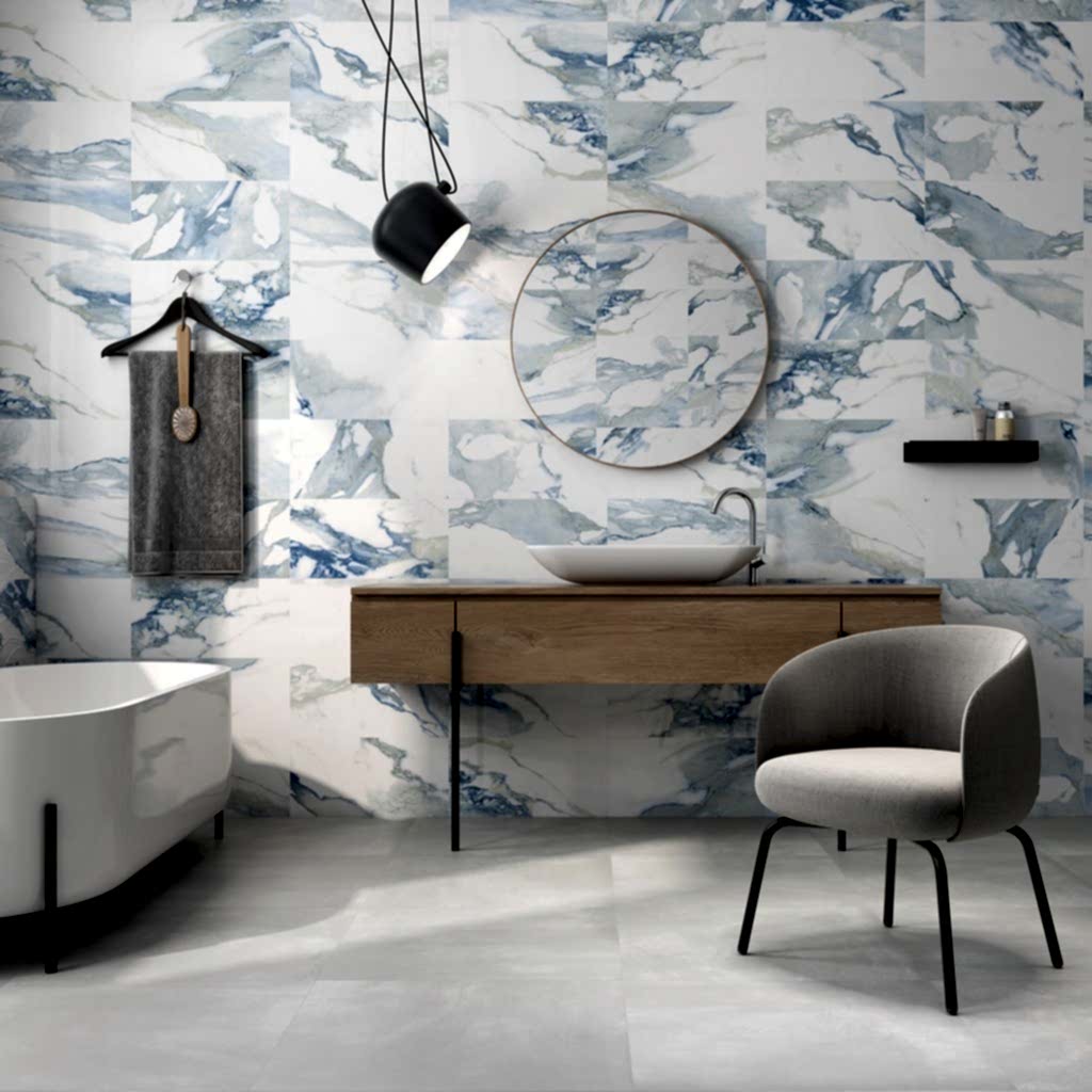 Shade | White marble effect tiles with blue vein |