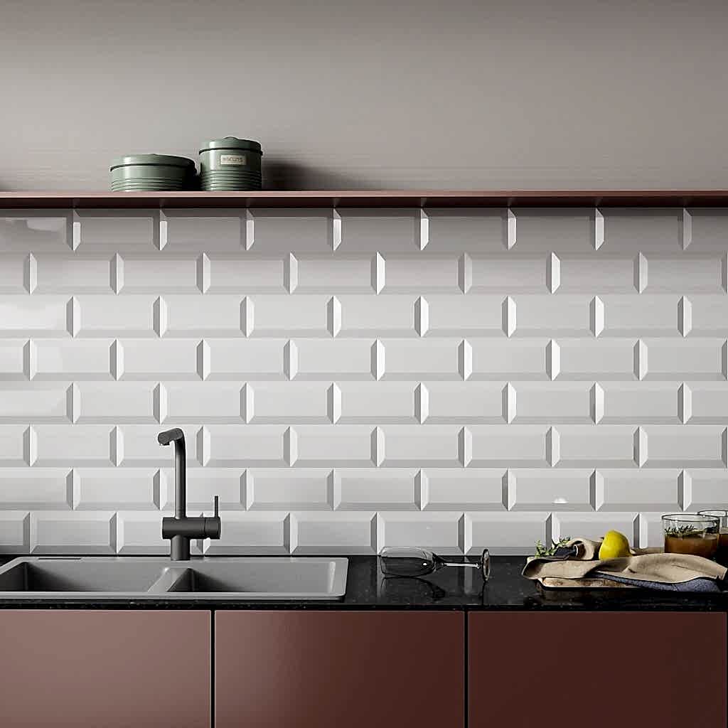 Enjoy the classic elegance of these white gloss metro tiles in a traditional design or go bold with an eye catching modern design.